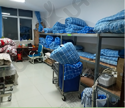 庫房物品雜亂,未進行分類,物品查找不便,效率低且不符合院感要求,有安全隱患。