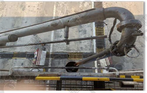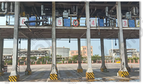 改善前:車頭較高的油罐車進(jìn)車時(shí)不注意容易刮到鶴管,導(dǎo)致鶴管拉斷損壞。