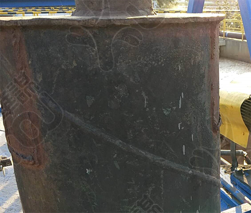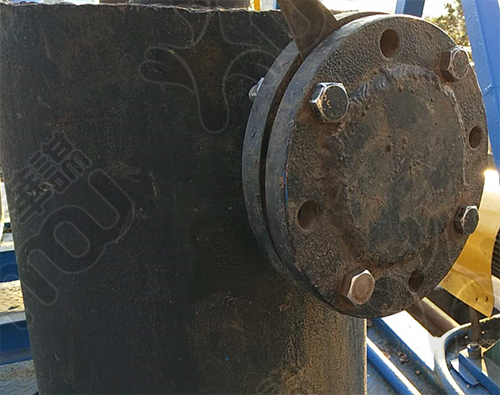 在負壓罐側面加一個人孔,用法蘭封閉,進入負壓罐的樹葉會堆積在人孔處,刮泥機堵塞時只需將法蘭取掉,從人孔處將樹葉掏出即可