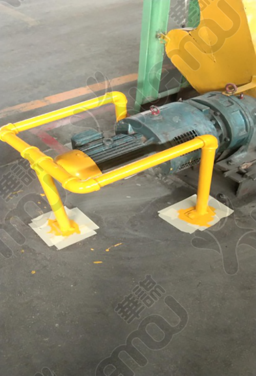 增加電機防護支架,用螺栓固定在地面上,方便拆裝。消除安全隱患